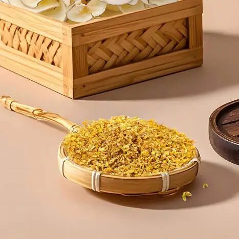 桂花:選用以“厚、香、醇”聞名的光福鎮桂花,香氣成分含量最高,且其溫性可平衡配方涼性,增添芳香。